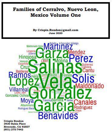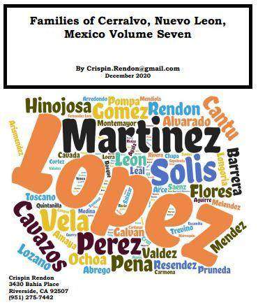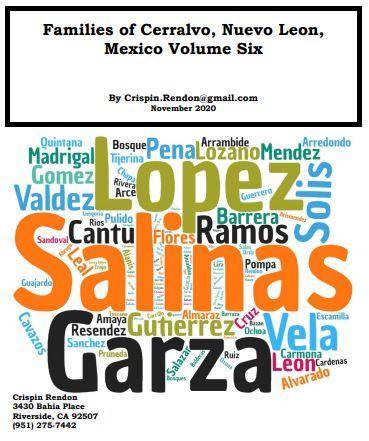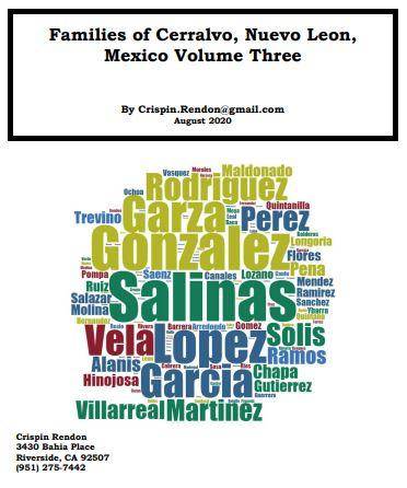 The following are free eBooks by Crispin Rendon. They are eight volumes in his series titled "Families of Cerralvo, Nuevo Leon, Mexico.